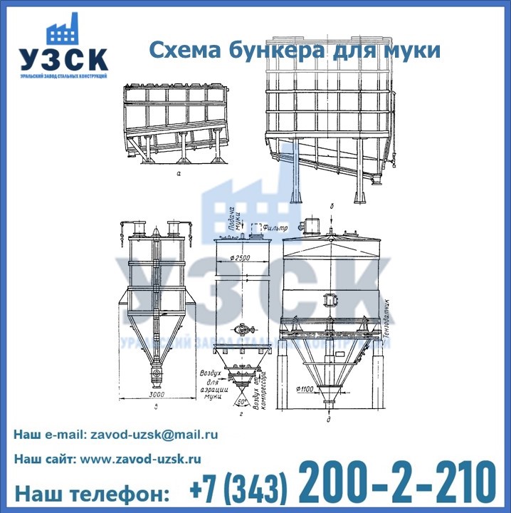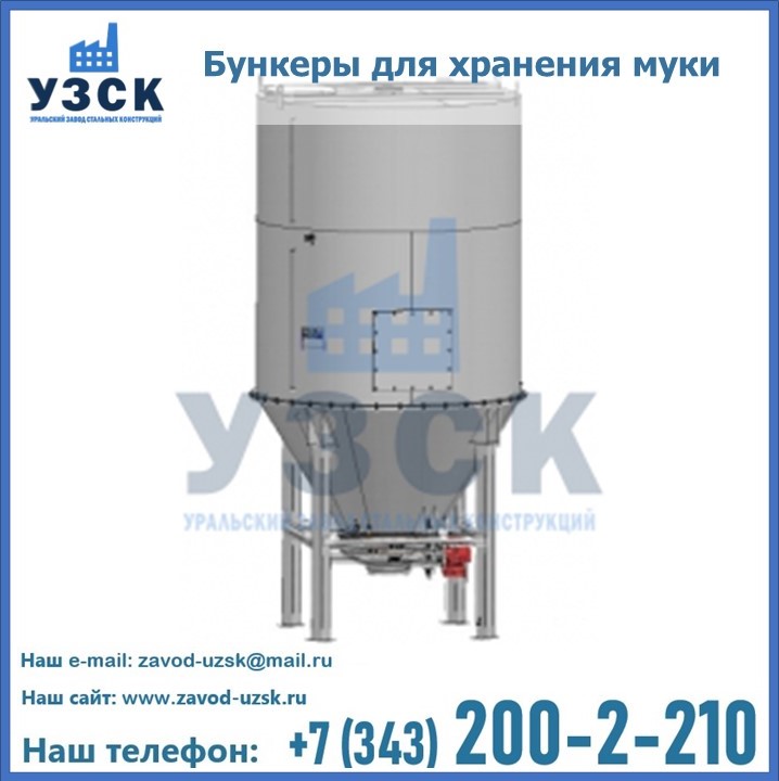 Завод «УЗСК» в Одинцово проектирует, производит и поставляет целевое оборудование, в том числе, бункеры для хранения муки и прочих сыпучих материалов.