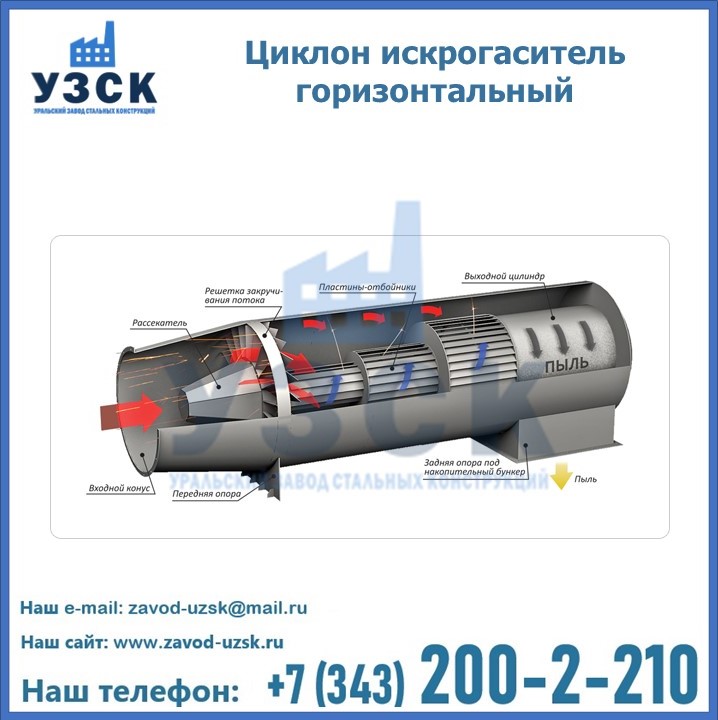 Горизонтальные циклоны-искрогасители ЦГ поставляются в Одинцово в сборке или же транспортными единицами для последующей сборки, если предназначены для работы с большими объемами.