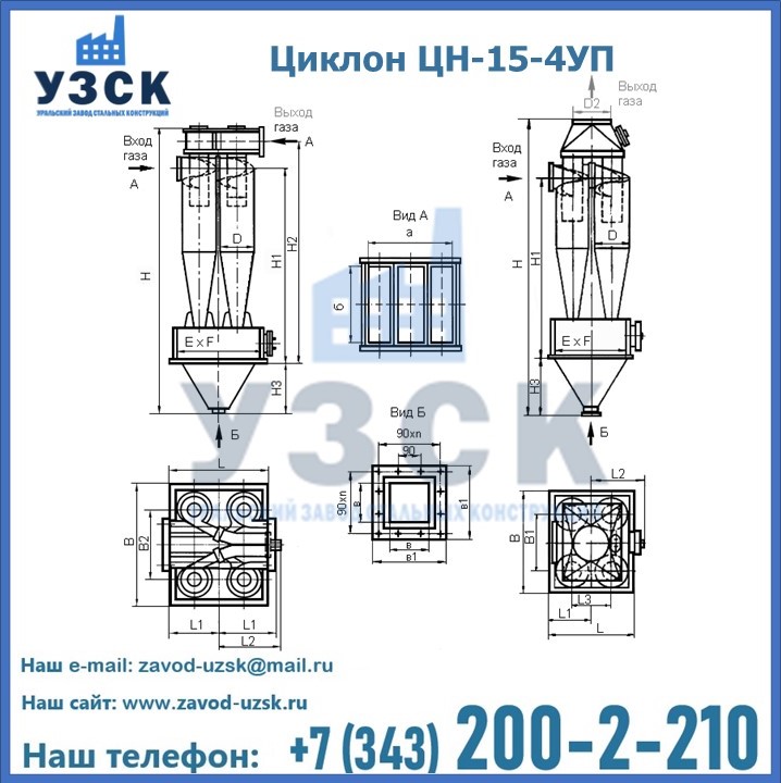 Завод «УЗСК» в Одинцово предлагает большой выбор циклонов ЦН-15-900×4УП и прочих устройств, полностью укомплектованных и готовых к эксплуатации. Мы гарантируем соответствие оборудования всем требованиям ГОСТ и ТУ, износостойкость и высокую производительность предлагаемого оборудования. Уральский Завод Стальных Конструкций изготавливает и продает надежное, эффективное и производительное оборудование, имеющее длительную гарантию и большой эксплуатационный ресурс. Если требуется изготовить циклон нестандартных размеров, то такой вариант выполнения заказа тоже предусмотрен, так как предприятие имеет собственные производственные площади и надежных поставщиков. На все поставляемое или производимое оборудование имеются чертежи и прочая техническая документация. Заказать и купить циклоны или прочее оборудование высокого качества и по доступной цене можно через наш сайт или по указанному в разделе «Контакты» телефону.