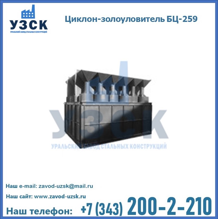 Если вы планируете купить то или иное оборудование, например, циклоны-золоуловители БЦ-259, то рекомендуем заказать данный товар на сайте УЗСК. Мы производим и реализуем продукцию высокого качества по приемлемой цене. Эксперты Уральского Завода Стальных Конструкций в Одинцово проконсультируют вас по всем вопросам, помогут сделать выбор и оформить заказ без лишних временных затрат. Мы гарантируем соответствие нашей продукции всем требованиям ГОСТ и ТУ, а также износостойкость и высокую производительность предлагаемого оборудования. Если требуется изготовить циклон нестандартных размеров, то такой вариант выполнения заказа тоже предусмотрен, так как предприятие имеет собственные производственные площади и надежных поставщиков. На все поставляемое или производимое оборудование имеются чертежи и прочая техническая документация. Заказать и купить циклоны или прочее оборудование высокого качества и по доступной цене можно через наш сайт или по указанному в разделе «Контакты» телефону.