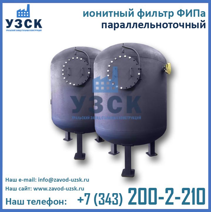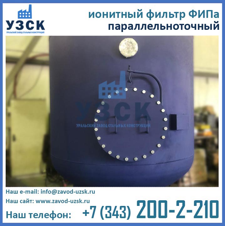 Уральский Завод Стальных Конструкций осуществляет изготовление ионитных фильтров ФИПа любого типоразмера в соответствии с нормами и требованиями ГОСТ. Завод УЗСК располагает собственным аттестованным гидростендом, на котором производятся гидрологические испытания готового оборудования. Фильтры ФИПа I 2,0-0,6 испытываются при подаче пробного давления 0,9 МПа.