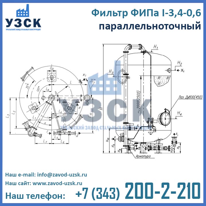 Производитель фильтров ФИПа параллельно-точных завод УЗСК предлагает два варианта комплектации ФИПаI 3,4-0,6 в Одинцово: