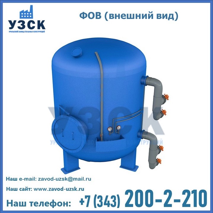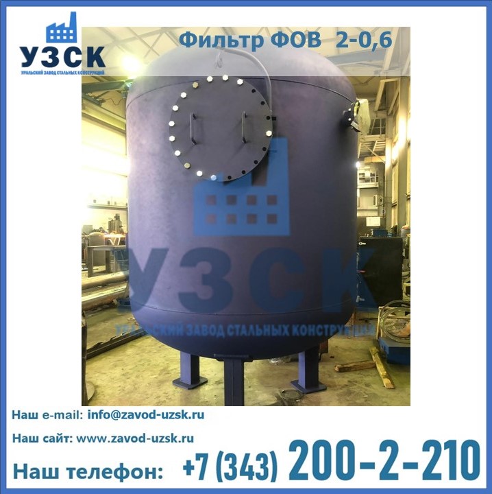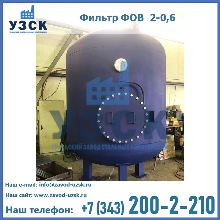 Удаление взвешенных веществ различного уровня дисперсности из рабочих жидкостей эффективно проводит фильтр осветлительный типа ФОВ (скорый или механический) — вертикально-цилиндрической формы установка, разработанная для систем водоподготовки различного класса. Оборудование представляет собой однокамерный агрегат для очистки воды рекомендованный для применения на станциях очистки стоков, в коммунальных котельных, на ТЭЦ, в промышленных отопительных системах и пр. Заказать производство ФОВ фильтров предлагает наш Уральский завод стальных конструкций в Одинцово. У нас можно купить фильтрационное оборудование различного класса и типа, в том числе фильтры ФОВ из нержавеющей стали.