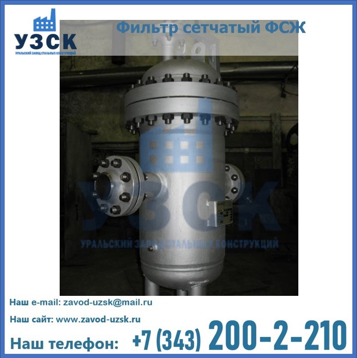 Очистку перекачиваемых жидкостей на предприятиях нефтяной, пищевой, горнорудной, фармацевтической и других отраслей промышленности эффективно выполнять с помощью жидкостного сетчатого фильтра — емкостное оборудование цилиндрической формы со съемной крышкой и элементом фильтрации внутри. Оснащенные им всасывающие линии насосных станций и установок защищены от проникновения твердых частиц в функциональные узлы гидравлической системы. Оборудование служит для перекачивания токсичных, агрессивных и иных эмульсий, суспензий, жидкостей. Купить фильтр сетчатый жидкостный ФСЖ в Одинцово с гарантией производителя предлагает «Уральский завод стальных конструкций». Мы выполняем проектирование и изготовление ФСЖ по индивидуальным требованиям (климатическая зона, транспортируемая жидкость).