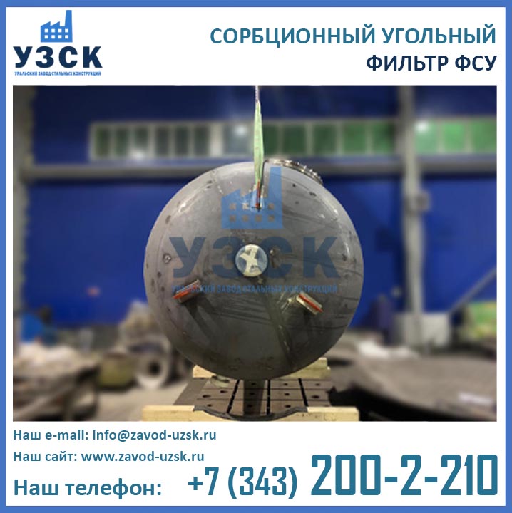 Качественную работу отопительных и промышленных котельных, линий по очистке конденсата и природных вод, электростанций обеспечивает фильтр сорбционный угольный типа ФСУ — вертикальный сосуд с одной камерой цилиндрической формы. Основное назначение оборудования состоит в глубокой очистке возвращаемого с производства конденсата от запахов, органических загрязнений и привкусов. Использование ФСУ в системах водоподготовки гарантирует очищение субстанции от масел, органических примесей, остатков нефтепродуктов до нормального значения — 0.52-1.0 мг/л. Купить в Одинцово угольные фильтры предлагает наш Уральский завод стальных конструкций. Мы выполняем производство ФСУ под нужды предприятия, возможно изготовление сорбционных фильтров ФСУ из нержавеющей стали включая корпус и внутренние устройства.