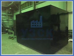 Бак проходит гидравлические испытания – емкость под заливом выдерживают 2 часа с простукиванием сварных швов. После испытания выполняют защиту от коррозии. Емкости оборудуют патрубками для заполнения и опорожнения сосуда с запорной арматурой. Устанавливаются указатели уровня, лестницы для обслуживания.